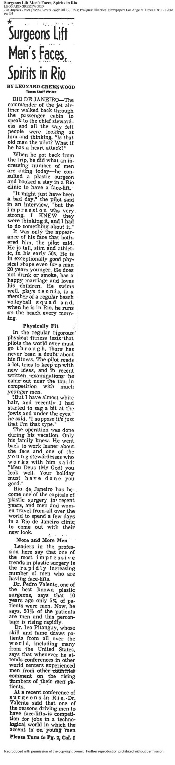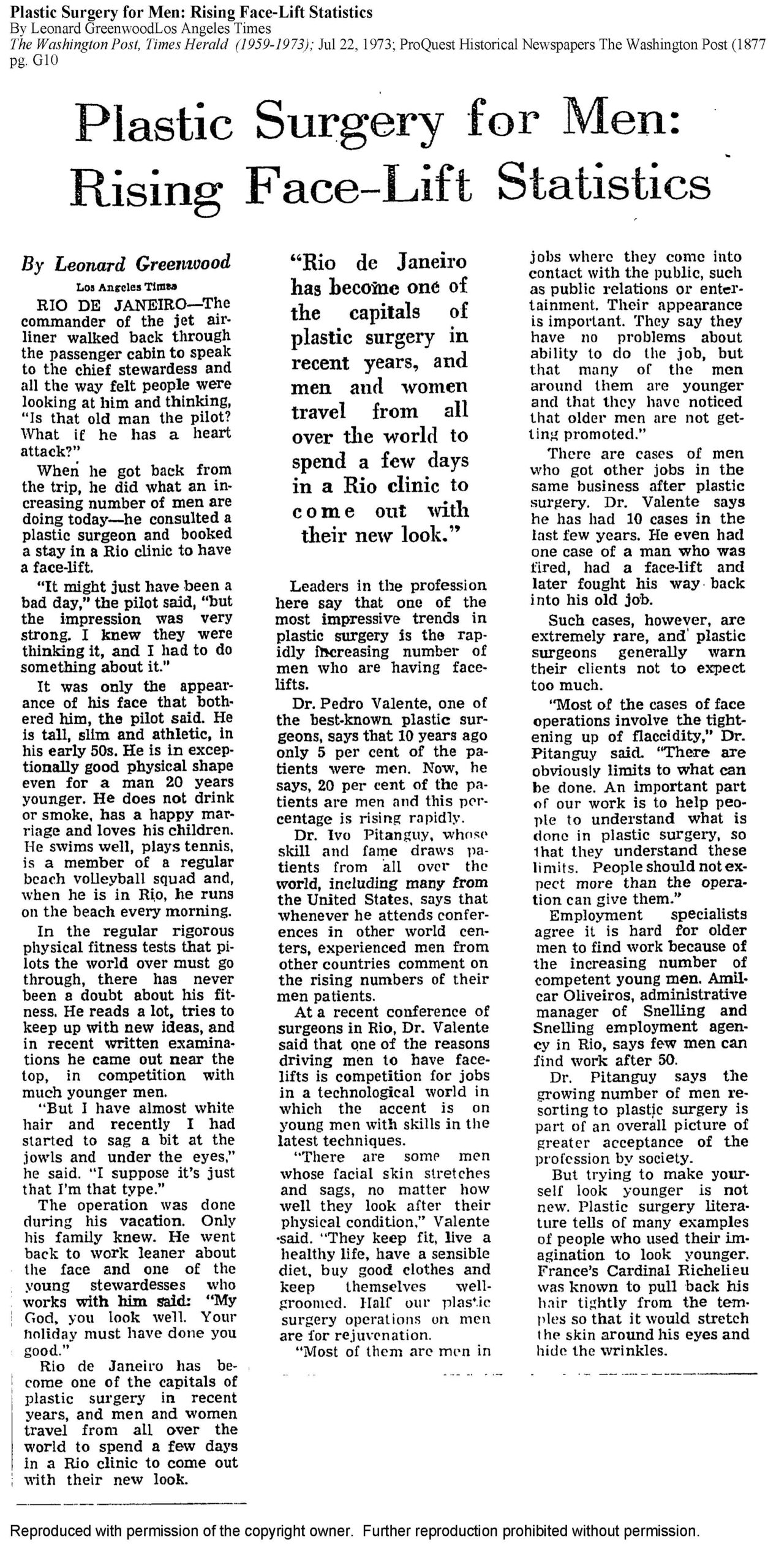 As many of you know, our father, Dr. Pedro Valente (1938–2016), dedicated his life to medicine and became internationally recognized as a pioneer in modern plastic surgery. Recently, while organizing our archives, we came across two remarkable articles from 1973, one published in The Washington Post and the other in the Los Angeles Times.